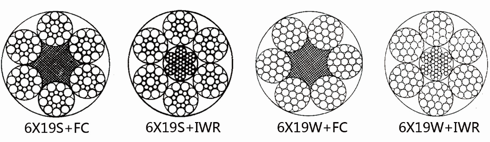 6×19S+FC; 6×19S+IWR; 6×19W+FC; 6×19W+IWR