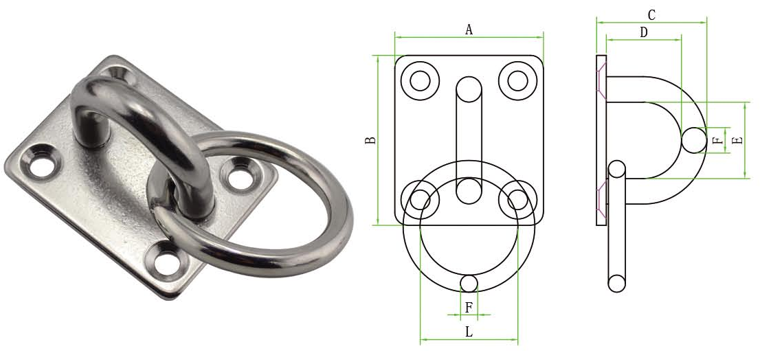 SS304 or SS316 Eye Plate Oval Eye Plate with Ring